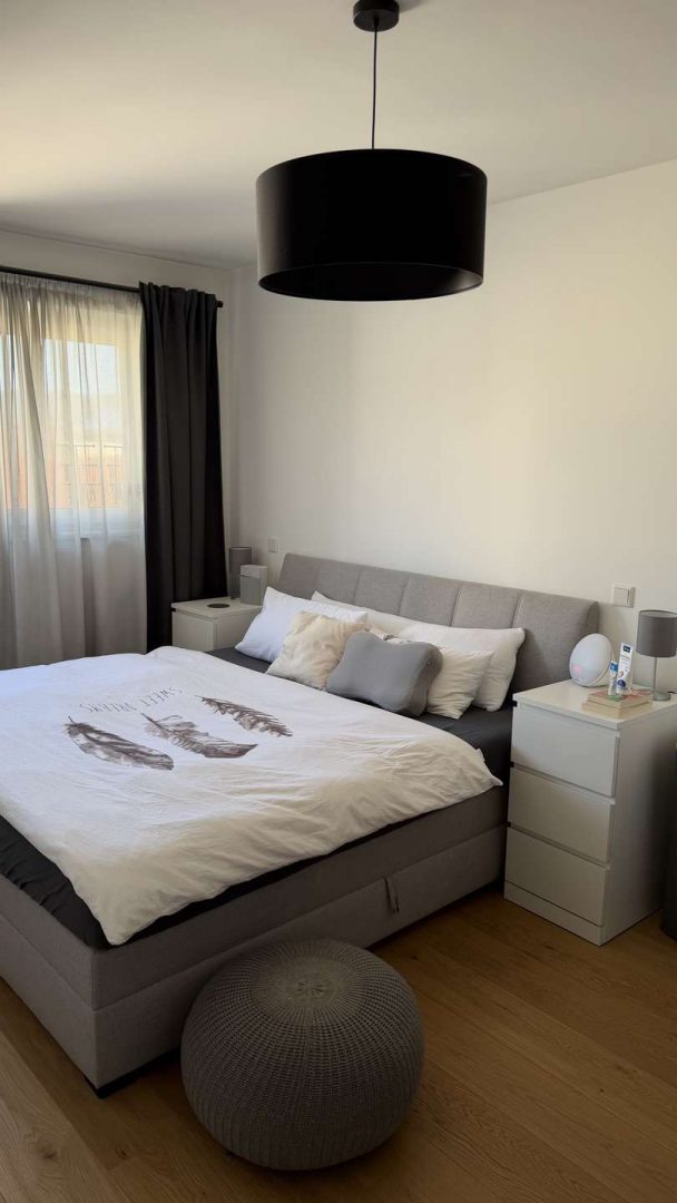 Sie verfügt über einen großzügigen Wohn- und Essbereich mit offener Küche, ein Schlafzimmer, ein modernes Badezimmer mit bodentiefer Dusche sowie einen Balkon und einen separaten Kellerraum. Fußbodenheizung, elektrische Rollläden und dreifach verglaste Fenster sorgen für hohen Wohnkomfort und eine energieeffiziente Wohnqualität.