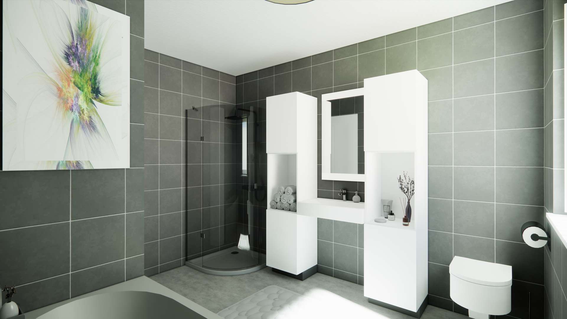 Das moderne Bad ist mit einer Dusche ausgestattet und fügt sich harmonisch in das Gesamtkonzept ein. Die Wohnung eignet sich ideal für Singles, Berufspendler oder Studenten, die ein modernes und pflegeleichtes Zuhause bevorzugen.