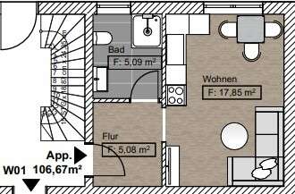 Dieses moderne Apartment bietet ein kompaktes, aber komfortables Wohnkonzept. Der Wohn-/Schlafbereich ist effizient gestaltet und bietet alles, was man für ein angenehmes Alltagsleben benötigt. Durchdachte Grundrisslösungen sorgen dafür, dass die Fläche optimal genutzt werden kann.