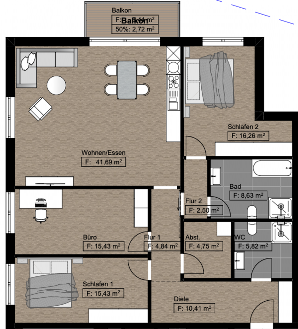 -Ausstattung: Balkon, Einbauküche (gegen Aufpreis)