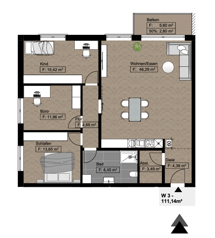 Wohnfläche ca. 111,14 m²