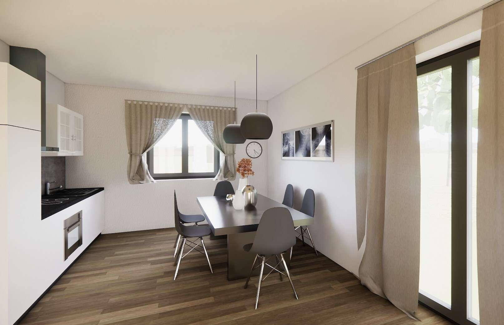 Betreten Sie das Haus durch einen einladenden Eingangsbereich, der direkt in den offenen Wohn- und Essbereich führt. Dieser zentrale Bereich des Hauses ist lichtdurchflutet und bietet direkten Zugang zur Terrasse und dem Garten – perfekt für Familienabende und gesellige Stunden mit Freunden. Die großzügige, offene Küche ist der ideale Ort für kulinarische Erlebnisse und fügt sich nahtlos in den Wohnbereich ein. Ein zusätzliches Gäste-WC und ein praktischer Hauswirtschaftsraum runden das Erdgeschoss ab.