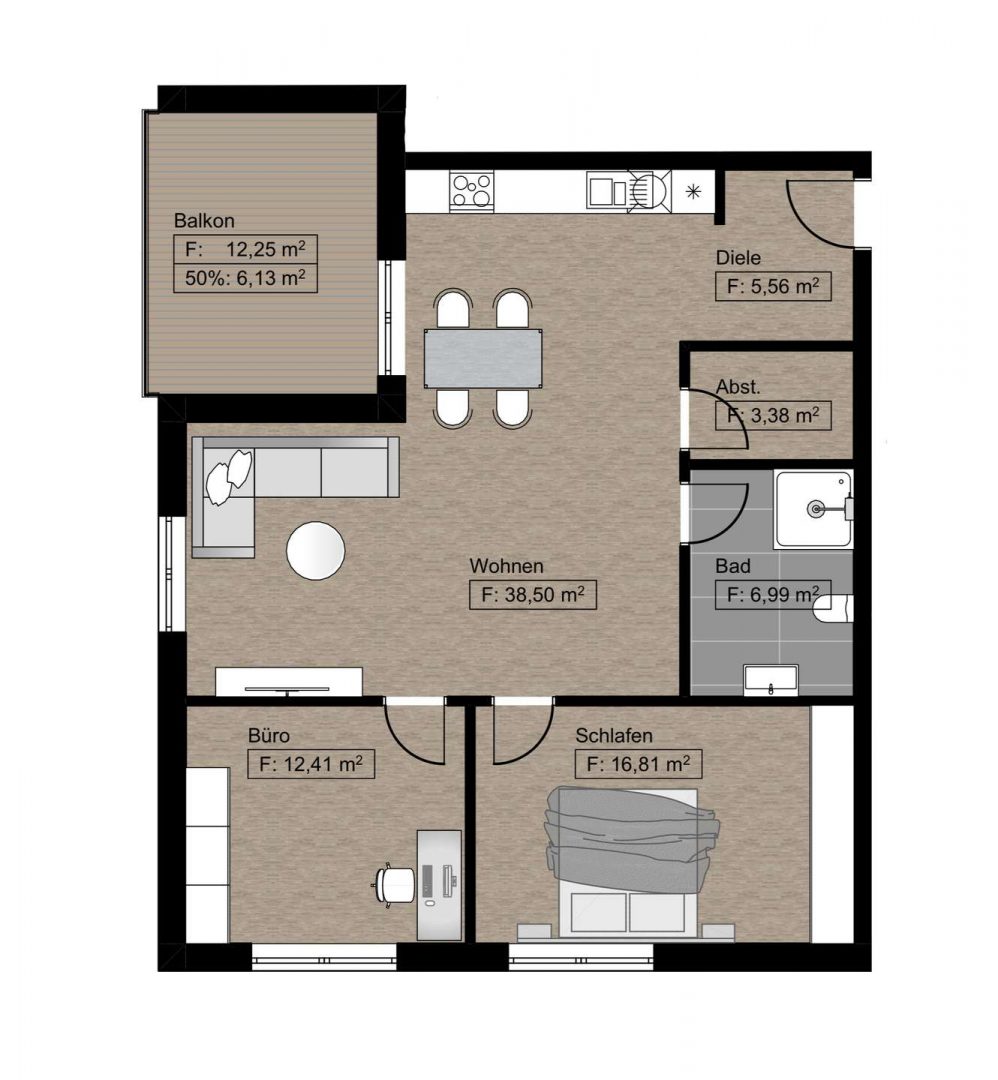 Diese moderne 3-Zimmer-Wohnung bietet Ihnen höchsten Wohnkomfort und überzeugt durch eine durchdachte Raumaufteilung. Sie befindet sich in einem gepflegten Mehrfamilienhaus mit Aufzug, was einen barrierefreien Zugang ermöglicht und den Alltag deutlich erleichtert. Die Wohnung verfügt über einen praktischen Abstellraum, der zusätzlichen Stauraum für Haushaltsutensilien oder Vorräte bietet. Dank großzügiger Fensterflächen sind die Räume lichtdurchflutet und schaffen eine angenehme Wohnatmosphäre.