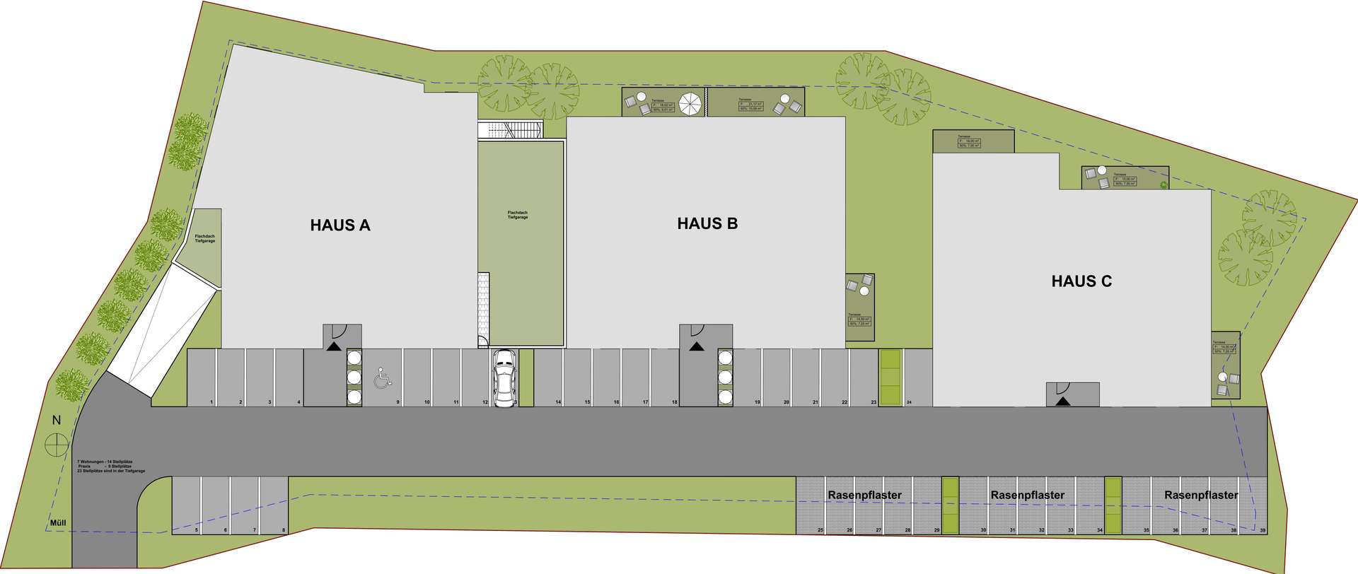 Tiefgaragenstellplätze können für 80 € monatlich angemietet werden.