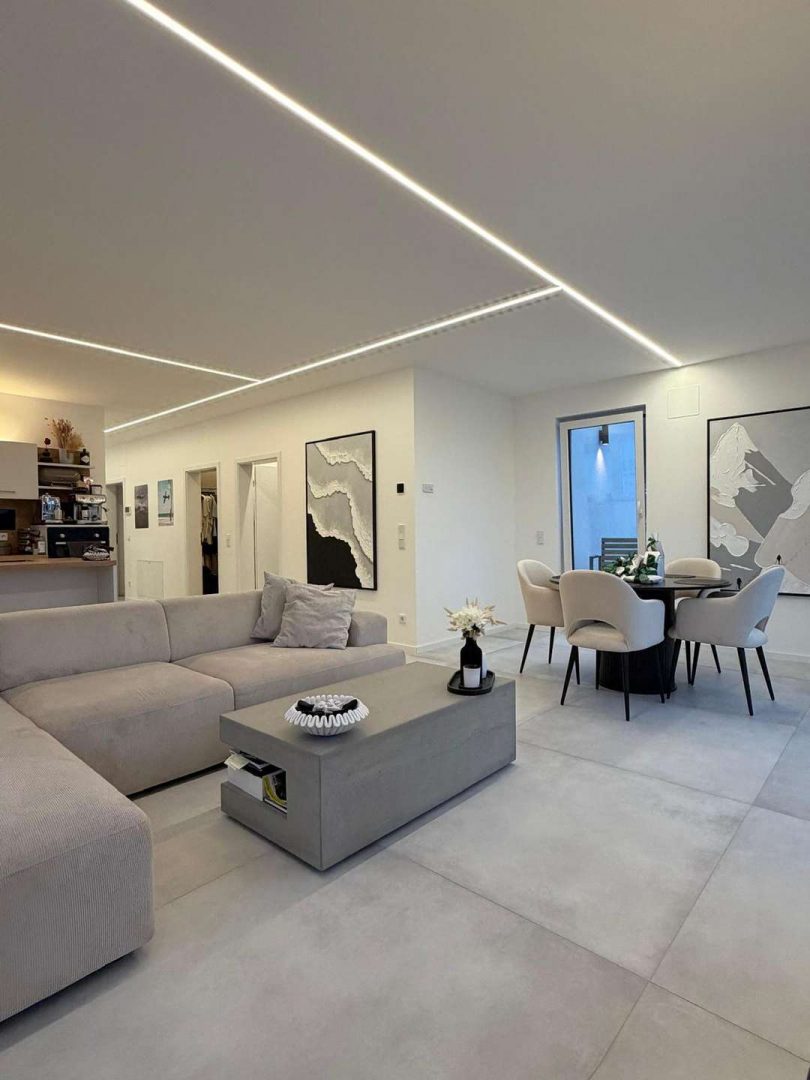 Die Immobilie verfügt über eine moderne Fußbodenheizung, die in allen Räumen für eine gleichmäßige und angenehme Wärme sorgt. Die Bodenbeläge bestehen aus hochwertigen Fliesen oder edlem Holz.