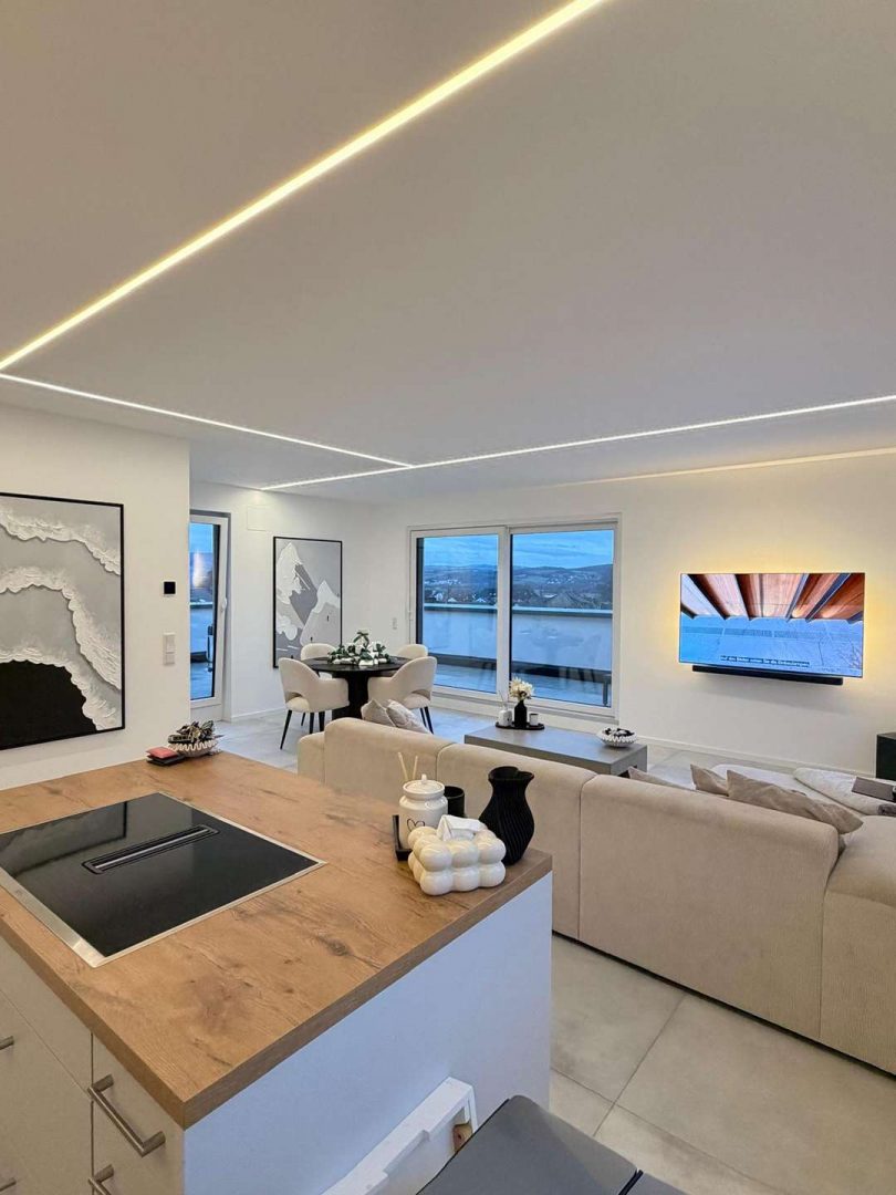 Ein integriertes Lüftungssystem sorgt zudem für eine kontinuierliche Frischluftzufuhr in den Wohnungen.